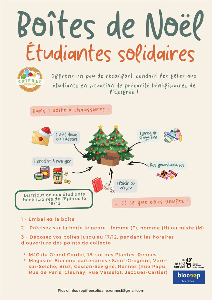 Pour des fêtes solidaires avec les jeunes en situation de précarité, nous nous allions cette année à Epifree, l’épicerie solidaire de l’Université Rennes 1.