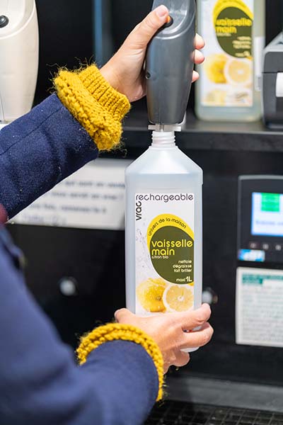 Fini les jolies boîtes en carton et tout le marketing qui va avec. Fini les flacons en plastique qui terminent au mieux au recyclage, au pire sur le septième continent, ce vortex de déchets qui empoisonne le Pacifique nord et ses habitant·es. Fini les quantités superflues et le reste au rebut. Pour vos produits d’alimentation, d’hygiène ou d’entretien, nous acceptons tous les contenants !